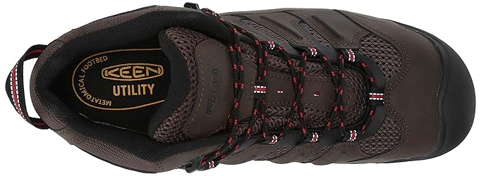 STEEL TOE: Left and right asymmetrical uniquely anatomically correct steel toe design provides a roomier toe box for maximum comfort and unobtrusive fit; The Lansing Mid meets or exceeds ASTM F2412 and F2413 I/75 and C/75 Standards TRACTION: Oil- and slip-resistant, non-marking, rubber outsoles are used for improved traction that meet or exceed ASTM F1677 MARK II and ASTM F2913 SATRA Non-Slip Testing Standards; Lug sole patterns provide grip even on slick surfaces WATERPROOF: KEEN.DRY is a waterproof, breathable membrane liner that lets vapor out without letting water in for keeping your feet dry and comfortable; The Pittsburgh 6” boot does have a mesh liner that integrates with the waterproof membrane UNDER FOOT PROTECTION: Electrical Hazard (EH)-rated to provide a secondary source of protection from live electrical circuits; A full-length TPU stability shank gives added support SAFETY & COMFORT: Reflective safety features run the entire length of the shoe for added visibility; Moisture-wicking textiles are used to keep feet dry