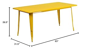 EMMA + OLIVER Commercial Grade 31.5" x 63" Rectangular Yellow Metal Indoor-Outdoor Table