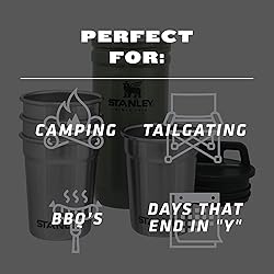 - FIESTA EN LA NATURALEZA: Dondequiera que estés, el set de vasos de trago Stanley te da la libertad de celebrar. Obtendrás 4 vasos de trago de acero inoxidable (2oz) y un estuche de transporte igualmente resistente para animar cualquier viaje de camping, pesca o mochilero