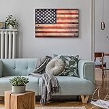UNIQUE SOLID WOOD WALL ART - Here is a lovely, rustic looking image of Old Glory printed on solid fir planks that gives a sense of the age and history that this flag represents PRODUCT TECHNIQUES - Made of real dried-out fir wood, giclee printed on solid fir wood planks, comes ready to hang on wall with 2 saw tooth hangers PROTECTION & INSTALLATION - Each piece is personally inspected before applying corner, pearl wool, plastic bag and carton, ensuring your package arrives unharmed. Saw tooth hangers installation directly on the artwork so it's easy to hang. Just open the box and it's all ready to adorn and brighten your walls! GIFT & PERFECT DECORATION - A perfect Christmas, New Year, Thanksgiving, National Day, Mother's Day, Father's Day, Birthday Gift for National Flag Lovers, your relatives and friends. A great piece to put center stage in your living room, bedroom, dining area, office, etc. PREMIUM QUALITY- Made with high-quality materials, this artwork is durable and long-lasting, providing a timeless addition to your home.