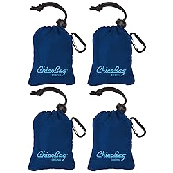- ChicoBag Original Series 4 Pack - Whether you are shopping at the grocery store, a retail store, or the mall, you can help reduce your impact on the environment by using eco friendly, reusable shopping tote bags from ChicoBag. In addition to being reusable and eco friendly, ChicoBags fit easily into your purse or pocket and weigh only 1.5 ounces, so you can always carry them with you. The integrated stuff pouch comes with a draw string and attached carabiner that can easily hook onto your backpack, keychain, or belt loop. The bags come in a great array of eco-chic colors, so they can be the perfect accessories to a green lifestyle. Switching to reusable shopping and grocery bags from ChicoBag is a great way to cut down on wasteful one-time-use paper and plastic bags. Reusable bags help the environment by reducing the amount of trash that ends up in landfills. In addition, using ChicoBags reduces waste because they are long lasting and promote reuse. ChicoBag will even recycle your reusable bags when you are done with them. What makes them better than many other reusable grocery bags is the compact pouch that is sewn into the interior seam. Reusable shopping tote bags make great gifts for birthdays, graduation, housewarming parties, and special holidays because they help to the spread message that reusability is an important part of reducing environmental impact and living a green lifestyle. While out shopping, it is recommended to carry several of these bags.