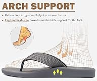 Sport Casual Flip Flops: Fashion sandals waterproof EVA inside padded strap is comfy and versatile, whether dress up and down with dress pants, trending jeans, stylish cloth. Premium arches thick cushion serve walking on cloud comfort Comfortable Arch Support: Supportive every step of your high arches and recovery the fatigue of walking. Men's orthopedic athletic sandals relax feet pain for long distance walk, improve your gait and lessen foot issues like Plantar Fasciitis Lightweight Cushioned & Flexible: Soft yoga mat wide width footbed is nice spring step for walking and standing all day, heel cup cushioning give extra stability without sacrifice comfort. Flexible plastic outsole bend well with rocker foot motion Indoor Outdoor Occasion: Trendy and versatile sandals go well every outfits and scenes. Classy slippers suitable for resort travel, going out vacation, cruise boat trip, walking, running errand, river lake fishing,gym, golf, hiking and outside camping Non-Slip Rubber Sole: Water-proof textured tread with best wear-resistant for beach pool party and easy hose off. Trending open toe slides shoes are essentials with simple jeans, popular pants, retro 70s shorts, fancy tank top and stylish swim trunks