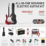 Donner 39-Inch Electric Guitar Starter Kit with Solid Body, HSS Pickup, Accessories, Amplifier, Lessons, and Digital Tuner - Red