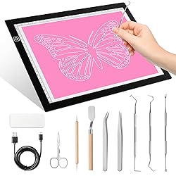 【Perfect Full Craft Weeding Tools Set for Gifts】- Dorhui Craft Vinyl Tools set included 1 piece LED light pad, 1 piece USB cable, 2 pieces different tweezers, 3 pieces different types hook weeder, 1 piece rectangular scraper, 1 piece stainless steel scissors ,1 piece tracing pen, 1 piece spatula 【Portable & Easy Operation A4 LED Light Box】- Advanced eyesight-protected technology, no harm to your eyes, especially for long-hour craft weeding projects. And the thickness is only 3.8mm which makes this light pad portable. Our LED box can adjust the brightness more greatly, From 0 LUX to 4500 LUX of choices ,always find the right brightness for you 【No Tiny Black Dots, Just Pure Luminosity】- Featuring a dual-lamp design for uniform and spot-free illumination, our light pad for weeding vinyl ensures a brighter brightness. With added anti-scratch coating, it's more durable, guaranteeing a long-lasting, flawless experience 【Complete Vinyl Weeding Tool Kit】- These vinyl picker tool have the ability to accurately preserve and remove different sections of HTV material, allowing you to efficiently complete your tasks 【Multi-purpose Craft Vinyl Tools Set 】- Dorhui A4 Adjustable LED Light Pad with Basic Craft Tools Set perfect for Adhesive Vinyl, Paper Craft, Lettering, Silhouette, Cameo, diamond painting, professional animation, cartoon copying, tattoo tracing, stencil creation, embroidery craft projects, fabric design, photography, film, architecture, and drawing