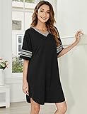 Ekouaer Nightgowns for Women Cotton Night Gown Short Sleeve Sleepwear V Neck Color Block Sleep Shirts Ladies Night Shirts