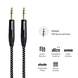 - CONNECT MORE with Cable Matters Audio Products Perfect Balance The Cable Matters 1/4 Inch TRS to TRS Interconnect Cable connects audio gear with TRS ports to deliver balanced audio signals. Patch audio equipment such as a foot pedal switch, studio monitor, audio interface or headphone amplifier. Superior Construction with a Lifetime Warranty The combination of gold-plated connector tips, bare oxygen-free copper conductors with insulation, and foil & braid shielding combine together to provide noise-free and precise signal transmission. The distinctive braided cable jacket is durable but flexible for easy installation and long life. A lifetime warranty is included with this interconnect cable for peace of mind when purchasing. Cable Specifications - Connector 1: 1/4 inch (6.35mm) TRS - Connector 2: 1/4 inch (6.35mm) TRS - Cable Conductors: Oxygen-free bare copper - Connector Contacts: Gold-plated - Shielding: Overall Copper Braid Warranty Limited Lifetime Warranty and Product Support