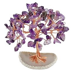 mookaitedecor Natural Amethyst Crystal Tree Copper Money Tree with Agate Slice Base Home Decoration for Wealth and Luck 3.5"-4"