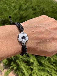 Soccer Jewelry- Unisex soccer charm bracelet. Designed for Soccer Enthusiasts: This Soccer Bracelet is the accessory for any soccer player, who wants to wear their passion on their wrist. It's a stylish way to show love for the game, both on and off the field. Soccer Bracelet -Braided Cords Weaved together with black and white Soccer Charm Adjustable- Easily Adjusts to Fit your Wrist 5" to 8" fitting most wrists sizes small to large. Adjustable and Comfortable: Crafted with an adjustable paracord, this bracelet ensures a fit for any wrist size, making it a versatile accessory for soccer players of all ages. It's comfortable enough to wear during games, practice, or everyday activities. Soccer Gift - Looking for an inexpensive gift for a special soccer player or fan in your life? Our parricides are the gift for Soccer Players & Soccer Teams for birthday, end of season, tournament, Christmas or just because