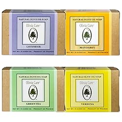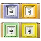 |Green Tea, Mandarin, Verbena, Lavender| Natural & Organic Olive Bar Soaps, 8oz (Large Size) by Olivia Care -Triple Milled, Pure & Cold-pressed (4pcs total (1 of Each Flavor))