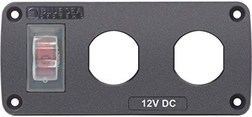 Blue Sea Systems Water-Resistant Accessory Panel, 2 Blank Sockets.Pre-wired harness included in all panels for easy installation.Silicon breaker boots and gasket protects against water ingress.Illuminated Carling Technologies 15A circuit breaker switch allows the ability to shut off panel preventing parasitic draw.Polycarbonate/ABS panel face is UV-stabilized, flame retardant, and will not corrode. IP66 - protected against powerful water jets (see inside back cover).