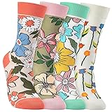 HSELL Womens Novelty Socks with Colorful Flower Design Fancy Gift for Mom Lady Breathable Cotton Socks for Daily Wear
