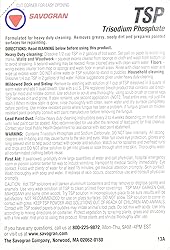 - Product Description Savogran 10621 Trisodium Phosphate (TSP) 1LB (16oz) From the Manufacturer A non-sudsing powdered Trisodium Phosphate compound that is formulated for heavy duty cleaning. Also recommended for washing away paint remover sludge. Sold as 2 pack.