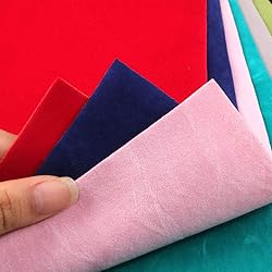- David accessories Double Sided Felt Velvet Soft Fabric 10 Pcs 7.7" x 12.9" (20 cm x 33 cm) Assorted Colors for DIY Bags Wallet Glasses Cloth Craft Projects Great Materials:double sided velvet soft fabric,each sheets size approx:7.7x12.9"(20x33cm),thickness approx:0.033 inch, PAPER THIN Vibrant Colors:package comes in 10 different colors as imaged to satisfy your different requests,10pcs/set Double sided velvet fabric can be cut with scissors and will not fray,can be sewn by hand or by machine,fabric is so soft and comfortable to touch,not hard Widely usage:perfect for home textile,making phone covers,pouches,bags,wallets,glass cloth,scrapbooking,hairbows,embellishment,kids' crafts,hat making,hair crafts,sewing,wedding festival party decoration,DIY craft projects Notice:due to the material itself,the leather sheets have a light smell,pls make sure you do not mind before you order