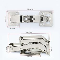 - Features: Reduce the speed of closing to keep you away from unwanted sounds in the kitchen/office The door hinge has a special adjusting screw for adjusting the opening angle of the hinge, the angle is 130-175 degrees Easy installation, small space, large use Specifications: Material: Stainless steel Opening angle: 130-170 degrees (for 16-40 mm cabinets). Color: Silver
