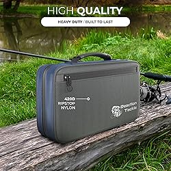 DELUXE BAIT BINDER FOR FISHING - Keep your tackle organized with this soft bait organizer with tons of pockets and sleeves to organize all of your soft baits. This bait storage solution can hold everything from hooks to fishing lines, so you'll always have everything you need for the perfect fishing experience! DURABLE QUALITY - This soft bait binder is made from high-quality salt water-resistant materials with durable fabric sleeves and heavy-duty zippers to keep everything secured at all times. AMPLE STORAGE - The water-resistant bait bag is perfect for all your fishing needs. It's got (2) large or four small clear pockets inside, an additional mesh pocket on the outside, and a big zipper storage section in front. So you'll have enough space for all of your bait storing needs. CONVENIENT CARRY - Reaction Tackle's soft bait and worm binder bags are perfect for fishermen who want an easy way to carry their bait. The soft handle makes carrying comfortable and is easy on the hands! They are also easy to store when not in use. PACKAGE INCLUDES - The package includes a single fishing lure binder with (4) extra large sleeves plus (2) double access sleeves - for your soft baits, sinkers, hooks, fishing line, or whatever you need to store.