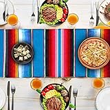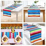 Mexican Table Runner 14 x 84 Inch Mexican Serape Table Runner for Mexican Party Wedding Decorations, Fringe Cotton Table Runner