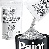 - Bring your walls to life with a stunning glitter finish Enhanced Light Reflecting Technology Add a durable fade resistant glitter effect to a range of surfaces. The tiny glitter crystals catch light and flicker, creating a beautifully subtle shimmer. Simple and easy to use, add this glitter to any emulsion paint and away you go! Colourfast & UV Fade Resistant - Colours will not fade over time Child Safe Heat & Solvent Resistant Non Toxic Vegan & Cruelty Free Easy to Use Using Glitter Paint Additive for Walls & Furniture Pour glitter into your water based paint with ratio 100g / 3.5oz per 1 Litre / Quart Gallon. We recommend using Hemway Chalk Paint for best results. Stir well until it is mixed thoroughly. Paint the surface with a roller or brush. When fully dry, to achieve more sparkles use Hemway Buffing Pads. to unleash thousands more glitter crystals. Additional Info Alter your glitter to paint ratio for a more subtle or striking effect.