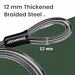Titanker Bike Lock Cable,12mm Thick Security Cable with Loops Heavy Duty Steel Cable Vinyl Coated Bike Cable Lock Security Chain (4ft, 7ft, 15ft, 30ft)