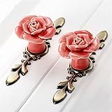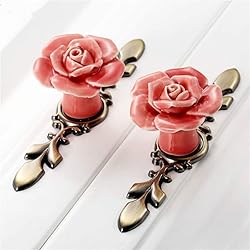 - If you are still looking for some cute drawer pulls to upgrade your old cabinets, please stop here, you will be asolutely surprized to find these adorable rose cabinet knobs, these are what you want. Why Choose Our Ceramic Cabinet Knobs: Vintage Flower Design You will get 6 rose drawer pulls and 6 pcs bronze back plates in one package. Use these country style knobs individually to refresh your cabinets, you can also use the backing plates to add your own knobs. Those will provide a vintage look. Functional Your little girls may love these romantic pink rose drawer knobs, they are perfect for kids room and nursery. Also, use these to your bathroom vanity, dresser and closet, as well as kitchen cabinet and laundry. How to Install Do it yourselft, super easy to install, find the position where you want to install and drill a hole , then pass through the screw from the back of board and thread tight to the knob. Packing Every rose knob is individually packed in a box in case of scratches during the transit. We assure that every knob is in perfect condition when you receive it. Shop With Confidence: We alway provide best products and service to customers. If you get a defective product, please feel free to contact us, you will get help within 24 hours. Specification: Material: Ceramics and zinc alloy Screws: 2 different size screws:25mm(0.98''), 30mm(1.18''). Suitable for more drawers and doors. Size: Knobs(1.57'' in diameter and 1.45'' in height), Back plate( 4.6'' in length and 1.57'' in width) Color: Pink and green Bronze Package Included: 4 PCS Rose Cabinet Knobs 6 PCS Green Bronze Back Plates 12 PCS Mounting Screws