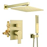 SHAMANDA Brass Rainfall Shower System, Luxuly Bathroom Shower Faucet Combo Set Brushed Gold(Including Rough-In Valve Body and Trim), L70001-3
