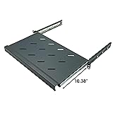 Universal 19" Standard Compatibility: Designed for 19-inch-wide racks, adhering to EIA-310 industry standards, and works with any 2-post or 4-post rack system, ensuring the standardized width simplifies integration into existing setups and supports diverse equipment; this shelf needs more than 10.8 inch depth space to be installed Space-Saving 1U Height (1.75"): Compact 1U profile maximizes vertical rack space and fits seamlessly into dense server environments without sacrificing capacity; includes mounting hardware (M6 screws, cage nuts & washers) Improved 3-Rail Ball Bearing Sliding Mechanism: Equipped with precision-engineered ball bearings that help this shelf glides smoothly in and out of server racks for frequent maintenance, upgrades, or adjustments; shelf has a max extension of 10.38 inches Vented Shelf Design: Vents allow air to pass through the shelf to prevent overheating by allowing heat to dissipate from servers, switches, or UPS units and complement rack cooling systems, maintaining optimal performance for heat-sensitive equipment and extending hardware lifespan Durable SPCC Steel with Anti-Corrosion Finish: Constructed from SPCC cold-rolled steel and finished in dark gray powder coated paint to resist corrosion, scratches, and wear in high-traffic IT environments; Attention: Keyboard is for display only and is not included