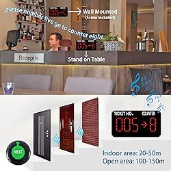 Power-off memory is one of the highlights of this queue calling system. When this function is switched on, the last number called will be stored automatically. Upon reconnecting the power, the call will start with "Last Number + 1" By default, numbers start at 000 and end at 999. You can set the "Start" and "End" numbers as required, for example, you only need to call numbers between 50 and 200. Once the call reaches the "End" number, the system will automatically restart from the "Start" number. Quick Zero: Suppose you have set the "Start" number to 10 and are currently calling 35. Press the Up and Down keys at the same time to quickly zero. When pressing the NEXT button, the number will start calling again from 10. Note that the "zero" here is not necessarily the number 0, but the "Start" number you set. The receiver consists of 3-digit ticket number and 1-digit counter number. The number display can be mounted on a wall or desktop. Easily adjust the volume, voice mode, number of broadcasts, cycle time, etc. The default voice mode is "Dingdong + Number XXX go to X" NEXT Button: It is a waterproof signal transmitter for the service personnel. When the "NEXT" button is pressed, the number will automatically go to the next one, accompanied by an indicator light prompt. It makes our queue wireless calling system simple and easy to use.