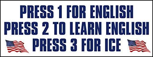 JR Studio 3x8 inch Press 1 for English 2 to Learn English 3 ICE Bumper Sticker -Wall Trump Vinyl Decal Sticker Car Waterproof Car Decal Bumper Sticker