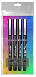 Advantage Gifts Precise V5/V7 Stick Rolling Ball Pens, Fine and Extra Fine Point, Assorted Points Black Ink, 4-pk; Bundle with Plastic Reusable Pouch