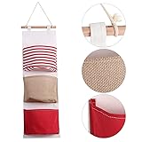Hztyyier 3 Pockets Wall Hanging Linen Storage Bag Large Capacity Hanging Door Closet Decoration for Room(Red)
