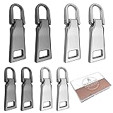 ASSORTED ZIPPER PULL: Package includes 8 pieces zipper pulls, 2 sizes #3 and #5. Zipper pull replacement small #3 measures 1.12 inch x 0.39 inch (28.5mm x 10mm), 2pcs silver color, 2 pcs gun black. Zipper pull replacement big #5 measures 1.57 inch x 0.55 inch (40mm x 1.35mm), 2pcs silver color, 2 pcs gun black. STURDY METAL ZIPPER PULL: The zipper pull tab is made of high grade zinc alloy and the surface is smooth and shiny. The zipper pull is sturdy which is great replacement for the damaged or broken zippers. STORAGE BOX INCLUDED: Come with the pack a plastic box, it keeps the zipper pull replacements good in storage. DIY ZIPPER PULL REPLACEMENT: U-shaped ring on the top of zipper pull can be opened and closed, therefore the zipper pull tab is reusable and dismountable. These zipper pulls are good replacement for DIY repair of broken zippers. EASY ZIPPER PULL REPAIR: Hold the zipper pull tab, use a nose plier to spread the U-shape ring on the top open. Attached the zipper pull to the zipper, and then closed the clasp.