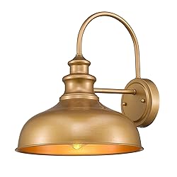 - Dimension 13.5" x 11.4" (H x W); Extends 13.1" from the wall LampShade: 11.4" x 11.4"(L x W) Back Plate: 4.7" in dia. Specification Brand: Zeyu Material: Metal Style: Rustic/Vintage Color: Hand-painted Gold Finish Voltage: 110-120V Usage: Warehouse/Barn/Farmhouse/Living Room/Kitchen/Bedroom/Covered Porch/Entryway Certificate: ETL listed Bulb Information Requires 1 x E26 Base Bulb(NOT included) Maximum Wattage: 60W Compatible Bulb: Incandescent/ LED /CFL Note: Hardwired. The bulb is not included. Package Include 1 x Barn Light 1 x User Manual 1 x Accessories Pack