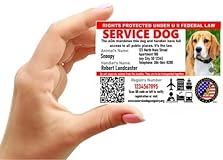 - CARD FEATURES Fully Customizable – Each ID contains the animal and handler information provided during registration. Registration link will be emailed to you. ID Carrier – A rugged vertical ID badge holder, made of heavy-duty PVC and offers clear visibility to both sides of the ID badge is supplied with each ID. Perfect to attach to a dog's collar, vest and harness, carrier, key chain, pocket loop, or bag. 30 Mil PVC Card – The full-sized ID card is the same size (2-1/8″ x 3-3/8″ or 54 mm x 86 mm) and thickness (.03”) as a standard credit card. The cards are extremely flexible and will not break under rigorous use. High-Definition Printing – Image & text are imprinted into the surface of the PVC card (sublimated) won’t delaminate over time! Full Color – Each card is printed in full color on the front side and black and white on the reverse side, as shown in the product photos. High-Quality Materials – Each ID card is made from composite PVC plastic, is the same size and have the same durability as a typical bank-issued credit card. They are completely waterproof. Made in the USA – Our ID Cards are manufactured by fellow Working Animal Handlers, just like you. Misrepresentation: US Service Dogs Registry and/or Just Paws LLC is not responsible for any misrepresentation by any customer of the identification products sold. As per ADA laws and the Fair Housing Act (FHAct) working animals and/or their handlers are not required to have an identification card. However, research shows handlers who carry working animal ID cards experience less confrontation by employees of establishments or entities than those who don't.
