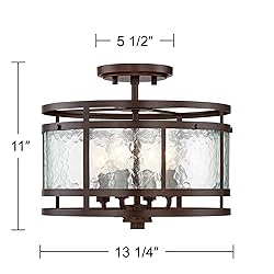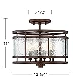 Franklin Iron Works Elwood Finish Rustic Industrial Ceiling Light Semi-Flush Mount Fixture Oil Rubbed Bronze 13 1/4" Wide Water Glass Drum for Cottage Core House Bedroom Hallway Living Room Bathroom