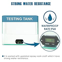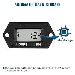 HOUR METER ---- It record the total working hours when machine is on(For some types of riding lawn mower,sit on the seat to enable the pressure switch on, then the hour meter will begin to record); Hours range: 0 to 99,999 hours. APPLICABLE WORKING VOLTAGE---- It is worked by external power of wide voltage application AC or DC 5V to 277V ,such as common voltage 12V 24V 36V 48V 72V 90V 110V 120V 220V 230V or another more; WATER RESISTANCE ---- This hour meter is made by 100% epoxy resin craft, it have strong water resistance and run normally into 10 meters underwater up to standards IP68. PRODUCT INSTALLATION ---- You can mount it at any proper place by drill-in and snap-in by panel cut-out size: 37.50mm*24.50mm(1.48 inches*0.96 inch);Easy to connect the external power equipment to start the working by the 2 same pins(positive and negative are not divided). OTHER FEATURES ---- View working data by built-in battery CR2050 360mAh; Reliable after-sales service and technical supports(2 years).
