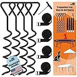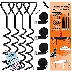 - Eurmax USA Trampoline Stakes Heavy Duty Trampoline Parts Corkscrew Shape Steel Stakes Anchor Kit with T Hook for Trampolines -Set of 4 Bonus 4 Strong Belt,Black