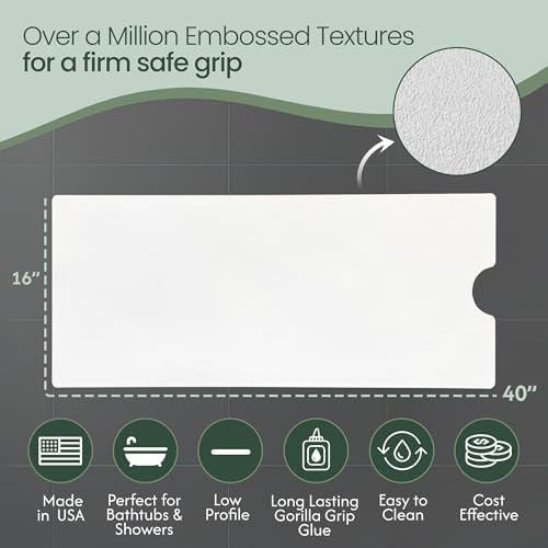 - The one & only removable permanent bathtub mat. Made from durable, skid-resistant vinyl, this bathtub mat features Gorilla grip strong adhesive backing that firmly sticks to any smooth, clean surface and delivers strong, reliable traction