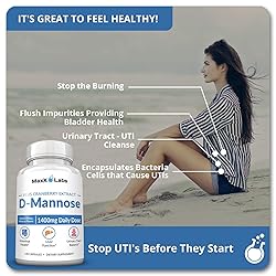 - Reclaim your freedom and confidence with MaxX Lab's D-Mannose Pills, expertly formulated to support bladder health for both women and men. Whether you’re dealing with frequent urination, urgency, or the discomfort of urinary tract infections (UTIs), our advanced blend offers a reliable solution to help you live life on your terms. Say goodbye to the discomfort and frustration of UTIs with our powerful cranberry-infused D-Mannose formula. Known for its ability to prevent harmful bacteria from adhering to the urinary tract, D-Mannose, combined with potent cranberry extract, creates a formidable defense against infections. Experience the peace of mind that comes with optimal urinary tract health. Why juggle multiple supplements when one can elevate your life? Our unique blend not only supports bladder health but also contributes to improved sleep and enhanced energy levels. Embrace each day with renewed vigor, knowing that you have the right support to combat incontinence and urinary urgency. MaxX Lab's D-Mannose Pills are packed with nature’s best, including Cranberry Extract, Vitamin D3, Pumpkin Seed Oil Extract, Hibiscus Flower, and Green Tea Extract. Each ingredient is carefully selected to work synergistically, ensuring your urinary tract remains healthy and vibrant. Easy to Use: Incorporating our D-Mannose Pills into your routine is simple and convenient. Just take 1-2 capsules before meals, and experience the benefits of effective bladder control and reduced urinary frequency. Break free from the limitations of incontinence and discomfort. Choose MaxX Lab's D-Mannose Pills for a powerful, effective solution that enhances your bladder health and overall well-being. Live boldly, live confidently!