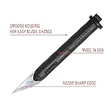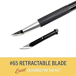- Every detailed cut on a model, scrapbook page, or presentation board depends on one thing: a truly sharp blade. When your K47 Executive Retractable Pen Knife starts dragging or tearing instead of gliding, these Excel Blades #65 replacement cartridges bring it back to life. Each high-carbon steel blade is ground to a fine, angled edge and factory-mounted in an injection-molded housing, so you get clean, controlled cuts without wrestling with tiny loose blades. Engineered specifically for the K47 retractable hobby knife, the #65 cartridge drops smoothly into the handle and locks in place for wobble-free precision. Swap a spent blade in seconds, then get right back to tracing stencils, trimming vinyl decals, or cleaning up edges on foam and cardstock before a deadline or client review. The slim pen-style profile keeps your hand relaxed and your line of sight clear, making it easier to follow curves, tight corners, and delicate details. This set includes six long-lasting refills, giving you plenty of sharp edges for weeks of cutting in the studio, classroom, or workshop. Use them to slice through paper, film, photographs, stickers, light plastic, thin chipboard, cork, wax, clay, vinyl, and pumpkin skins for seasonal projects. From scrapbooking and bullet journaling to cosplay armor, miniature scenery, and architectural mockups, these blades deliver crisp cuts that minimize frayed fibers and rework. As a small, USA-based manufacturer, Excel Blades builds tools that makers can rely on day in and day out. Our carbon steel blades are produced to strict tolerances in Paterson, New Jersey, then inspected so they meet the expectations of artists, designers, teachers, and industrial users. Pair these #65 refills with your K47 retractable pen knife (sold separately) and keep a pack in your desk drawer, tool roll, or travel kit so you are never stuck finishing a project with a dull edge again