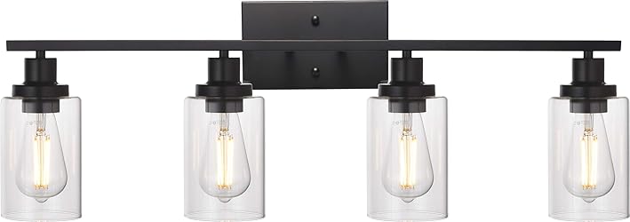 MELUCEE 4 Lights Sconces Wall Lighting Black with Clear Glass Shade, Industrial Bathroom Light Fixtures Vanity Lights Porch Light Fixtures Wall Mount (Patent No.: US D963914 S)