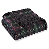 Eddie Bauer - Throw Blanket, Brushed Fleece & Plush Sherpa Bedding, Throw Blanket for Couch & Bed (Pine Tartan Dark Green, 50" x 60")