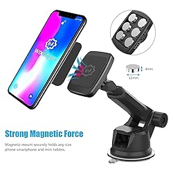 WixGear Universal Magnetic Car Mount Holder, Windshield Mount and Dashboard Mount Holder for Cell Phones and Tablets with Long Arm – (New Version Telescopic Arm)