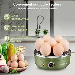 - Prepare The Most Delicious Eggs Ever & Make Everyone Wonder! Now you don’t have to … … wait for the water to boil. … fill pans and pots with water. … watch the clock all the time. You have just found the coolest egg boiler cooker device that will do all the work for you. Save your precious time and get yourself a VOBAGA electric egg poacher. Load With Eggs, Fill With Water, Wait & Enjoy – Precise Egg Boiling Has Never Been That Easy Before! With just 3 moves and a little bit of your time, you can prepare the most delicious eggs ever. Load the stainless steel rack tray with up to 7 eggs, fill the basket with water, plug and let the cooker do the rest. Piece of cake, right? This electric egg cooker uses auto shut-off tech to save energy, protect and even prevent accidents. As soon as your eggs are cooked, the egg boiler will let you know that is time to remove them.No more guessing. Each package includes several accessories to aid the egg cooking procedure. Open it and find a measuring cup, an egg poaching bowl and a stainless steel rack. The measuring cup features markings for varying degrees of doneness and the poaching tray holds up to 7 eggs all at once. Take it off the heated cooker and place it under cold water to speed up the cooling process. Please notice: egg holder and the lip can be cleaned in the water; But base tray and the base can NOT wash in the water, you just can scrub it with wet towel. With A VOBAGA Egg Cooker You Could … · … boil soft, medium and hard eggs. · … prepare tasty egg custard. · … try eggs Benedict or poached. · … even heat up food on the rack. What are you waiting for? Get yours today. Scroll Up & Click Add To Cart!