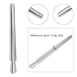- Essential tools kit for professional and beginner, designed for wire working,craft wire, wire wrapping and wire jewelry, easy to useThe Ring Mandrel is made of aluminium material, US UK standard, easy to read size chart on mandrel for full and half sizes; 27 Pieces Ring Sizer Set made of steel,US size(0-13),come in half sizes, come with a flexible cable with a screw connection which can be opened easilyThe soft rubber hammer has two sides, can be used to flatten or strengthen wires, rubber head would not leave traces on the jewelry or damage your jewelryHeavy-duty mandrel equiped with hammer, will make your rings round again easily. Do wire wrap rings and this is perfect for the construction of the ring. Holds shape perfectly and easy to maneuverPackage Include:- 1 * Ring Mandrel Sizer Stick (US size) - 1 * Ring Gauge Sizer Set (US size 0-13, come in half sizes) - 1 * Ring Mandrel Stick (No size on it) - 1 * Rubber Hammer