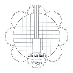 The center is now precut to give you a smooth surface for sewing. The center circle of the guide is also marked with 1/2" grid lines for a wider seam allowance. This is a seam guide that temporarily adheres to the bed of any sewing machine. These grid lines also help to ensure correct placement when adhering to your sewing machine bed. This tool saves time by not having to mark lines on your fabric when sewing half square triangles, flying geese or snowballs. Plastic