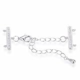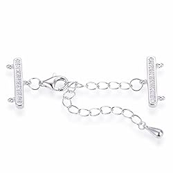 (3 sets) Material: real 925 sterling silver and premium quality cubic zirconia/imitation diamond, 925 stamped, tarnish resistant rhodium plated; sterling silver is hypoallergenic, nickel free and lead free - a good choice for those who have sensitive skin; Tarnish resistant rhodium plating finish to protect this sterling silver clasp from tarnish, oxidation and fading (rhodium is a member of platinum group) Bar size about 15mm long x 2mm wide (0.6 inch x 0.08 inch), small lobster clasp 8mm (0.32 inch), closed rings for wire/jump ring is about 2mm (0.08 inch) OD with inner diameter 1mm (0.04 inch), extended chain is about 50mm long x 2mm wide (2 inch x 0.08 inch) - standard size multiple strands clasp Beautiful adjustable clasp set helps design multiple strands bracelet, anklet, necklace, other layering jewelry easily and conveniently; be advised that you need wire, string or jump rings to attached this clasp to your jewelry or craft; small closed ring with innder diameter 1mm (0.04 inch) Safe craft and jewelry making supplies; A material and quality assurance certificate of these real 925 sterling silver products issued by Adabele, USA is included; These Items are packaged into Adabele's trademarked bag