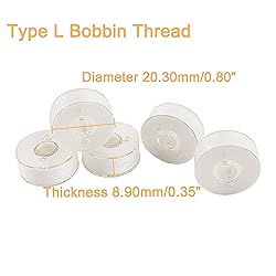 - New Brothread - EMBROIDER AND SEW YOUR LIFE ! New Brothread 25pcs Type L (SA155)Prewound Bobbin Thread Plastic Side - 90 Weight Color:white Type:Size L Plastic Sided with core Length:110m Thickness:8.90mm/0.35″ Diameter:20.30mm/0.80″ Material:MOST SOFT Spun Polyester 60S/2 Packing:25pc bobbins packed into one plastic box Type L Size Prewound Bobbin Threads are compatible with following particular Embroidery and Sewing Machines: (If your machine is not listed below, please feel free to check with us!) Compatible with Brother:CS 8072;PC 2800,3000,6000,6500,7000,7500,8200,8500D; PE 100,150,150V,170D,180D,200,300S,400D; PR 600,600II,620,650,650E,655,1000,1000E; PS 1000,1250,2200,2300,2500; ULT 2001,2002D,2003D; PQ 1300,1500 BabyLock:Enterprise BNT10/BNT10L; Ellageo(ESG2 ESG3); Ellure ESL; Esante ESE-2; Espire ESP; Jane BL500A; Pro Quilting BLQP; Endurance 6 Needle BND9; Embroidery Professional EMP6, BMP6, BMP8 & BMP9 Bernina:Artista 165,170,180,185,185QEE,190,200E,630E,580E,640,640E,730,ALL...; Aurora 430,430QEE,435,440,440QEE,450; Deco 300,350,500,600,650,930; Inspiration 1630,1000,1001,1021,1070,180,185,450,640,580,200,730 Husqvarna:Prelude 360,340; Scandinavia 100,335,330,325,320,315,310,250,230,225,215,210,205; All Sew Easy series,Romeo,Juliet,Oscar, Anna,Sophia,Emma, Lena, Daisy 315,325,335, Sarah, Madison; Platinum 955E,950E, Platinum Plus775,700,755Quilt,750Quilt,735,730,715,700; Rose, Iris, 605, Rose600; Lily 555,550,545,540,535,530,515,500; Freesia 445,435,425,415,400,350; Interlude 435/445;Scandinavia 200,300,400;Designer I, II, III;Designer SE; Quilt Designer, Quilt Designer I, II;Designer Ruby, Diamond;Topaz20,30;Sapphire 830,850,870 Janome:Janome MB-4 Juki:TL-98, TL-98Q Pfaff:Creative 2170,2144,2134,2124,2140,7550,7570, 2.0,3.0,4.0;Creative Vision;Creative Performance; Creative Sensation