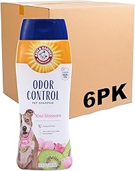 - Arm & Hammer Deodorizing Dog Shampoo is designed to help cleanse the coat and reduce strong dog odors during routine bathing. The formula uses baking soda to support odor control while washing away dirt and buildup, making it suitable for regular grooming at home. This tearless shampoo is formulated to be gentle on skin, helping cleanse without causing irritation. It supports coat softness while maintaining comfort for dogs with sensitive skin during and after bathing. The shampoo rinses clean to help avoid heavy residue, leaving the coat feeling fresh and manageable. A light kiwi blossom scent provides a clean fragrance without being overpowering, helping dogs smell fresh between baths. The balanced formula is suitable for dogs and puppies and can be used as part of a consistent grooming routine. Arm & Hammer dog grooming products are designed for straightforward pet care. This deodorizing shampoo offers a practical solution for maintaining cleanliness, comfort, and fresher smelling coats through regular use.