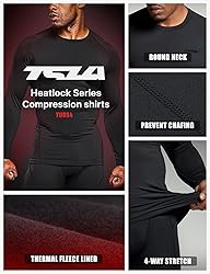 - For all sports and cold-weather activities, the TSLA Thermal Baselayer Series is designed with the best heat insulation and thermal materials. ** Washing Tips: Wash separately, by hand, in cold water. Lay flat to dry and do not dry clean. Fleece Lining The purpose of the micro-fleece lining is to give warmth as well as moisture sensing, quick drying, and two-way air circulation. Non-Abrasion Fabric With moisture detecting, quick-dry, two-way air circulation, and great durability. Flatlock Seams Smooth seams that promote excellent comfort and protection. It is appropriate for both indoor and outdoor activities including basketball, boxing, fitness, hiking, cycling, and other outdoor and indoor sports.