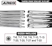 SPECIFICATIONS: The ARES Tamper-Proof Folding Star Key Set contains 10 total star keys including T-6, T-7, T-8, T-9, T-10, T-15 T-20, T-25, T-27 and T-30. QUALITY: These keys are constructed from high strength Chrome Vanadium steel with a corrosion-resistant finish, and the rails are anodized lightweight aluminum. The tamper holes will work, and the ends won't shear off. These are precisely machined. Built to meet and exceed ANSI/ASME specifications, the ARES Star Keys work perfectly on tamper resistant security screws for added versatility. COMMON APPLICATIONS: Use of security star bits is becoming more and more common. Your car, toaster, video games, sewing and coffee machines all have them. Without a tamper-proof star key, you wont be able to even start repairing any of them. When you need these, you will want to have them on hand. RELIABLE | EFFECTIVE | EFFICIENT: Users trust ARES to be quality tools. You are backed by our Performance Assurance Limited Lifetime Warranty. If you have any issues with your ARES Tamper Proof Folding Star Key Set, simply contact customer service for troubleshooting help, parts, replacement, or refund. "ASPCA BUSINESS AMBASSADOR: We are proud to be part of the ASPCA Business Ambassador Program. If you have a pet, you realize they are more than a pet, they are part of the family. With your support, we are proud to help this great organization.