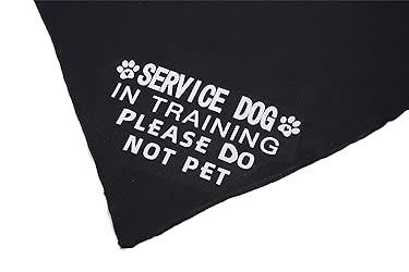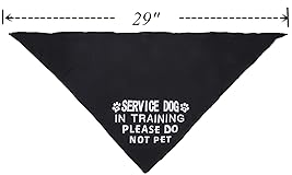 - Neck sizes: 29inch Package: 1 x SERVICE DOG IN TRAINING PLS DO NOT PET dog bandana Black dog bandana for special occasion. It is very professional when the dogs wearing.